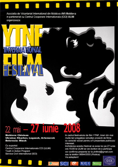 AVI Moldova in partnership with the Center for International Cooperation ULIM is organizing the film festival on social topics during 22-27 June 2008. The festival is organized by the volunteers from 3 countries (Moldova, Ukraine, Russia) and it rolls simultaneosly in the three countries films directed by foriegn and local directors. The Film Festival aims to sensitize the vision of youth on social problems such as